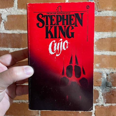 The original Pet Sematary cover would have creeped me out seriously if I’d seen it as a kid. The first I recall seeing of any Stephen King cover was an old 80s cover of Cujo when I was about 9 in the West Ridge Mall book store in Topeka when I went to get my Super NES. The blood red color, the curdled font used for the title, and the weirdness of the word “Cujo” creeped me out, but I didn’t know what the book was even about yet, let alone that it was about something as dumb as a dog with rabies that might be possessed by a serial killer.